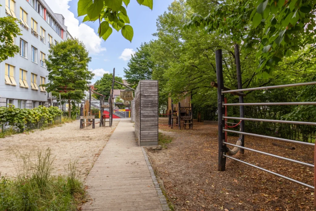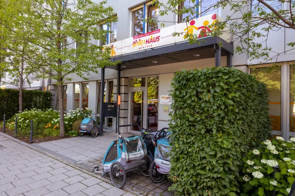 Unsere Kindertageseinrichtung in München-Sendling bietet Kindern von neun Wochen bis sechs Jahren einen geschützten Ort zum Entdecken, Spielen und Wohlfühlen. In einem modernen Gebäude mit großzügigen, lichtdurchfluteten Räumen betreuen wir bis zu 98 Kinder in vier Krippen- und zwei Kindergartengruppen. Ein besonderes Highlight ist der große, ruhig gelegene Garten – eine grüne Oase mitten in der Stadt, die zum Forschen, Toben und Entspannen einlädt.
